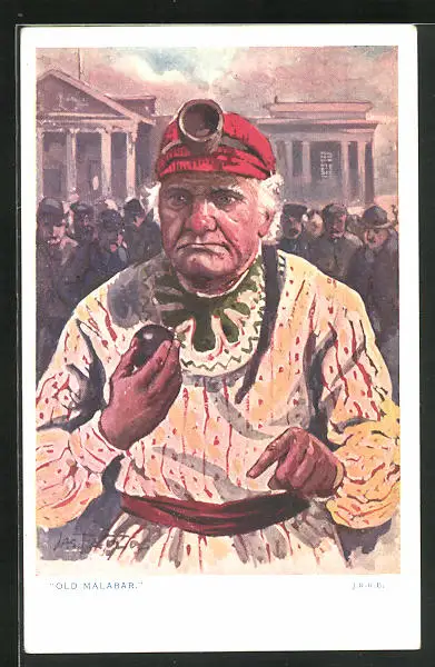Künstler-AK Indien, Old Malabar, älterer Herr in Tracht