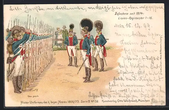 Künstler-AK Infanterie, Linien-Regimenter 1-16 auf dem Exerzierplatz