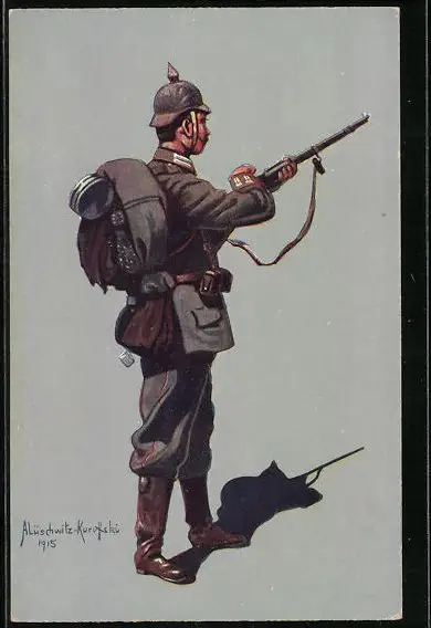 Künstler-AK Infanterist des 4. Garde-Reg. zu Fuss Berlin, Feldgrau