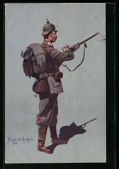 Künstler-AK Infanterist des 4. Garde-Reg. zu Fuss in Feldgrau