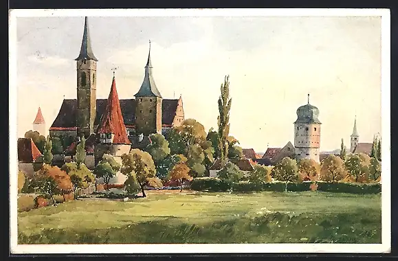 Künstler-AK Iphofen, Teilansicht mit Türmen
