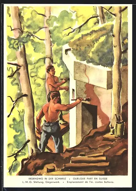 Künstler-AK Irgendwo in der Schweiz, L. M. G. Stellung, Gegenwerk