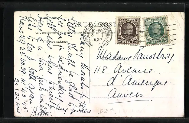 gelaufen 1927, Eckknick oben li., guter Zustand