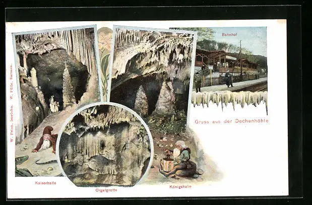 Künstler-AK Iserlohn, Dechenhöhle, Bahnhof Dechenhöhle