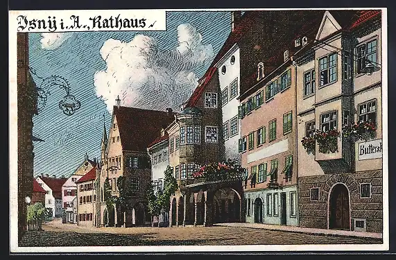 Künstler-AK Isny i. A., Blick auf das Rathaus