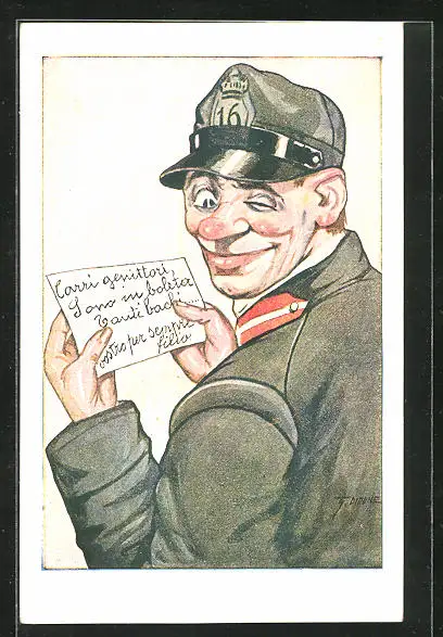 Künstler-AK Italienischer Soldat freut sich über Feldpost