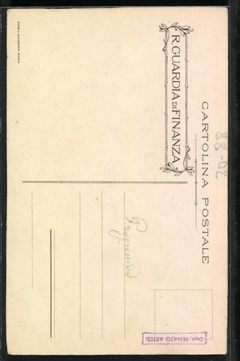 Personenbezogene Daten auf der Rückseite der Karte wurden durch blauen Textmarker unkenntlich gemacht. Die blauen Stellen sind auf die Vorderseite durchgeweicht und wirken sich negativ auf das Postkartenfoto aus