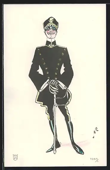 Künstler-AK Italienischer Soldat in schwarzer Uniform mit Degen und Schirmmütze