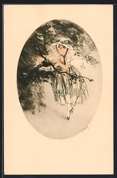 Künstler-AK J. Hardy: Fräulein am Vogelnest