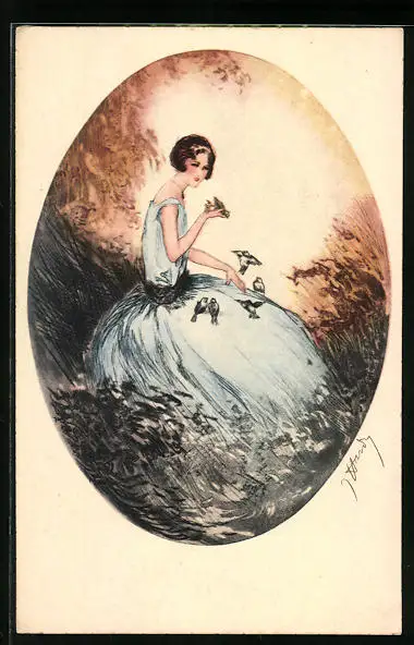 Künstler-AK J. Hardy: Hübsche Frau mit Vögeln