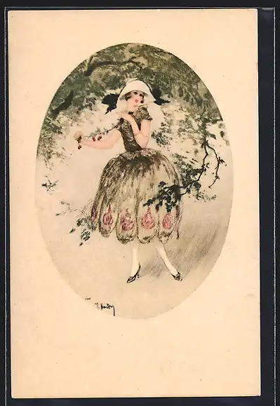 Künstler-AK J. Hardy: Junge Frau steht unter einem Baum