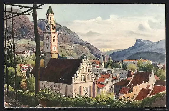 Künstler-AK J. Marschall: Meran, Blick zur Pfarrkirche