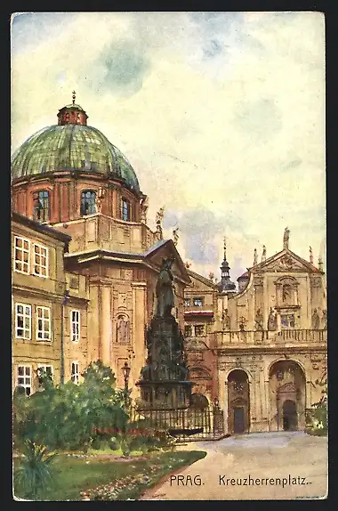 Künstler-AK J. Safarik: Prag, Kreuzherrenplatz