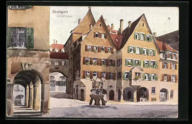 Künstler-AK J.Marschall: Stuttgart, Geissstrasse