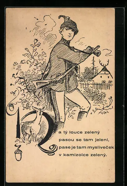 Künstler-AK Jäger, Ricke, Jagdhaus