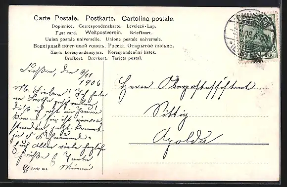 alte Ansichtskarte, gelaufen 1906, guter Zustand