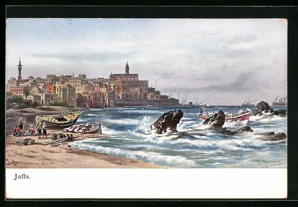 Künstler-AK Jaffa, Teilansicht mit Strand