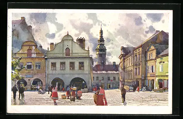 Künstler-AK Jaroslav Setelik: Domazlice, Námestí pred hradem