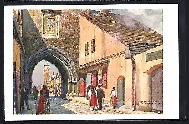 Künstler-AK Jaroslav Setelik: Domazlice, Pred dolni branou