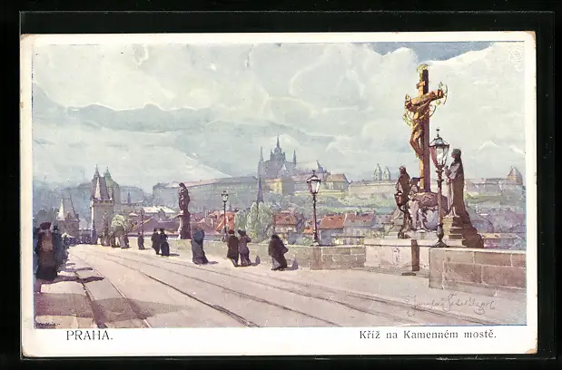 Künstler-AK Jaroslav Setelik: Praha, Kriz na Kamenném moste
