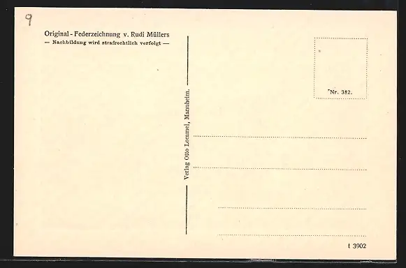 Personenbezogene Daten auf der Rückseite der Karte wurden durch blauen Textmarker unkenntlich gemacht. Die blauen Stellen sind auf die Vorderseite durchgeweicht und wirken sich negativ auf das Postkartenfoto aus