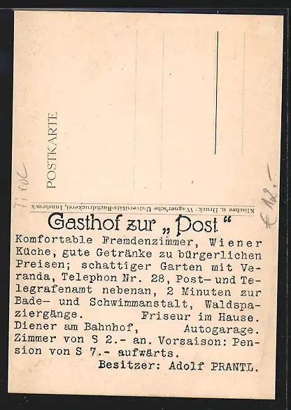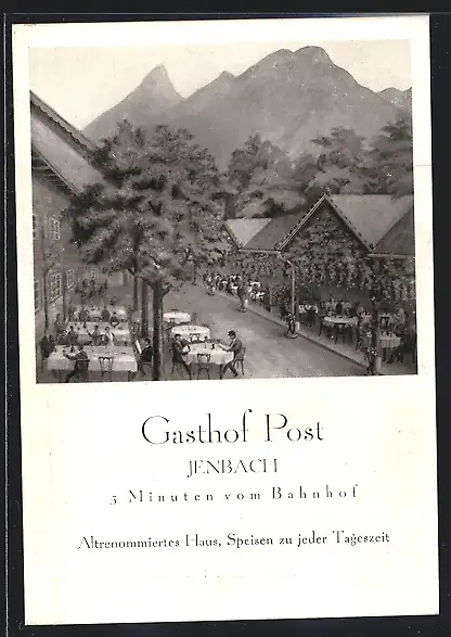 Künstler-AK Jenbach, Gasthof Post mit Garten