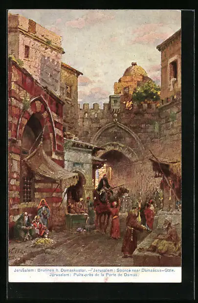 Künstler-AK Jerusalem, Brunnen beim Damaskustor