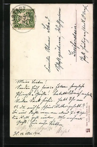 alte Ansichtskarte, gelaufen 1910, Einriss li. oben, guter Zustand