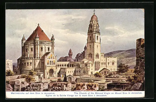 Künstler-AK Jerusalem, Marienkirche auf dem Sion