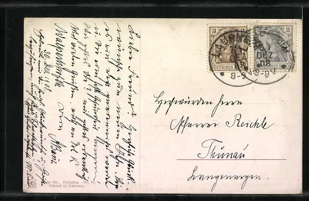 alte Ansichtskarte, gelaufen 1908, Eckknick re. oben, guter Zustand