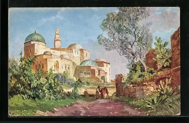 Künstler-AK Jerusalem, Passanten an Davids Grab