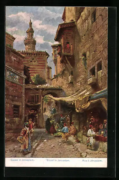 Künstler-AK Jerusalem, Strassenpartie in Jerusalem
