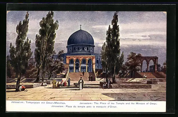 Künstler-AK Jerusalem, Tempelplatz mit Omar-Moschee