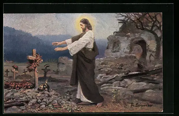 Künstler-AK Jesus segnet Grab auf Soldatenfriedhof