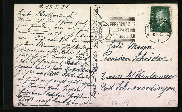 alte Ansichtskarte, gelaufen 1931, guter Zustand