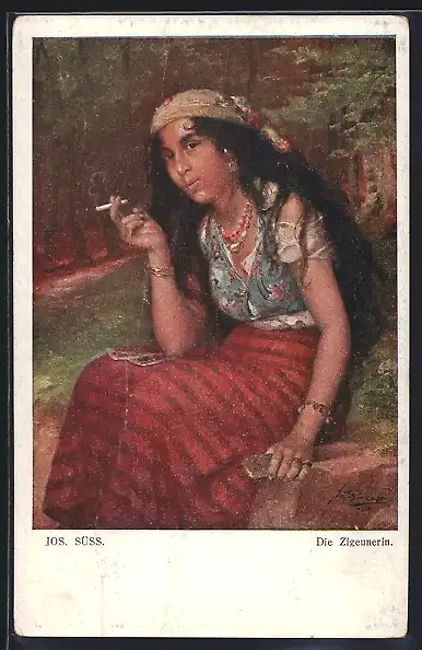Künstler-AK Josef Süss: Rauchende Zigeunerin mit Kopftuch