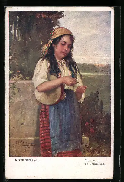 Künstler-AK Josef Süss: Zigeunerin mit Kopftuch