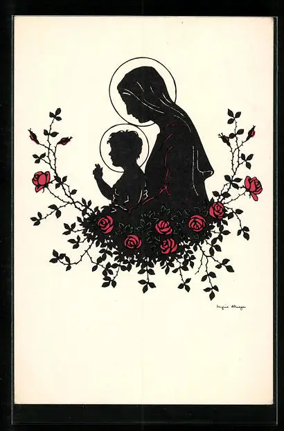Künstler-AK Josefine Allmayer: Scherenschnitt, Maria und Jesuskind