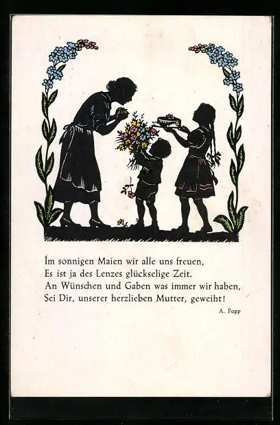 Künstler-AK Josefine Allmayer: Scherenschnitt, Muttertag