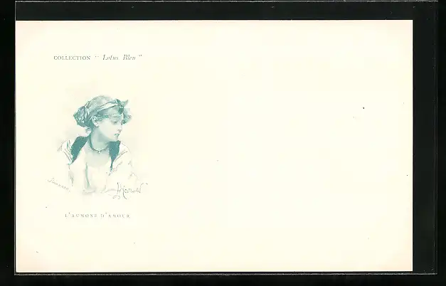 Künstler-AK Junge Frau mit Haarband, L`Aumone d`Amour, Collection Lotus Bleu