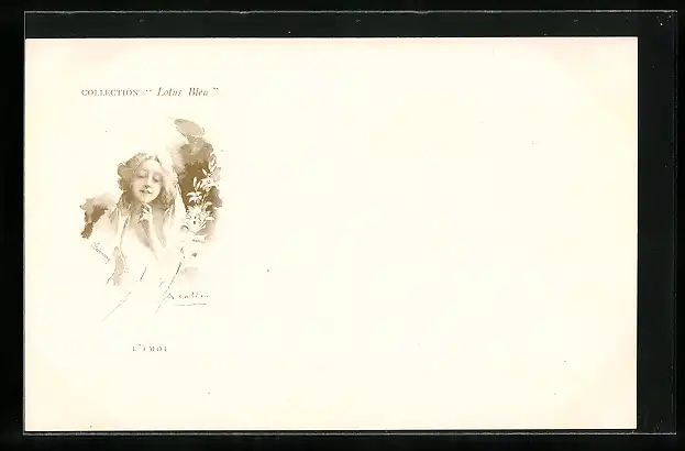 Künstler-AK Junge Frau mit leichtem Lächeln, L`Émoi, Collection Lotus Bleu