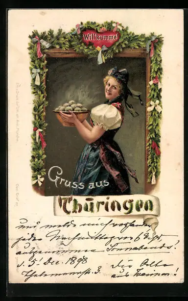 Künstler-AK Junge Frau mit thüringer Klösen in Tracht