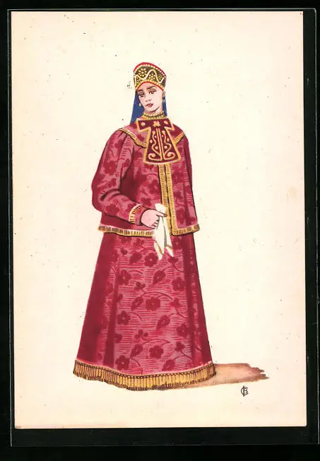 Künstler-AK Junge russische Frau in rotem volkstypischen Gewand