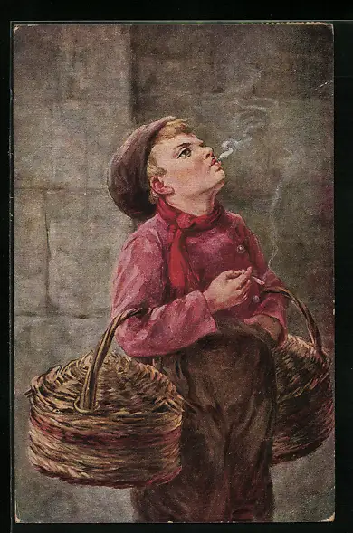 Künstler-AK K. Barth: Rauchender Junge mit Körben