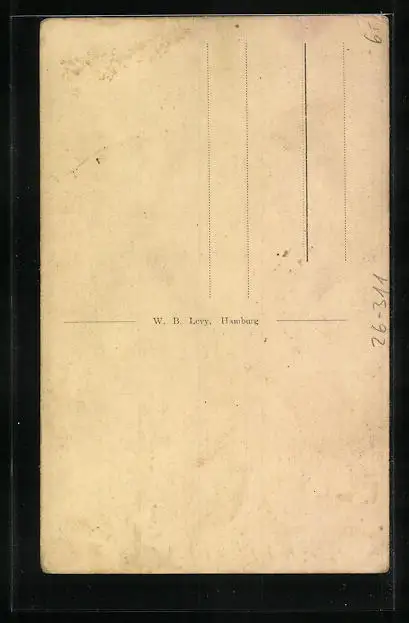 Personenbezogene Daten auf der Rückseite der Karte wurden durch blauen Textmarker unkenntlich gemacht. Die blauen Stellen sind auf die Vorderseite durchgeweicht und wirken sich negativ auf das Postkartenfoto aus