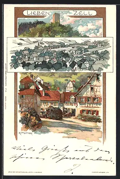 Künstler-AK K. Mutter: Bad Liebenzell, Partie im Ort, Panorama