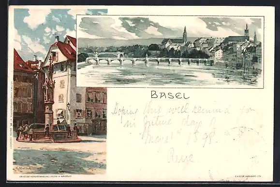 Künstler-AK K. Mutter: Basel, 2 Ansichten, um 1900