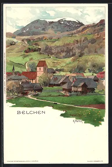 Künstler-AK K. Mutter: Belchen, Strasse zum Ortseingang