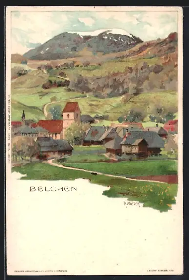 Künstler-AK K. Mutter: Belchen, Totalansicht des Ortes