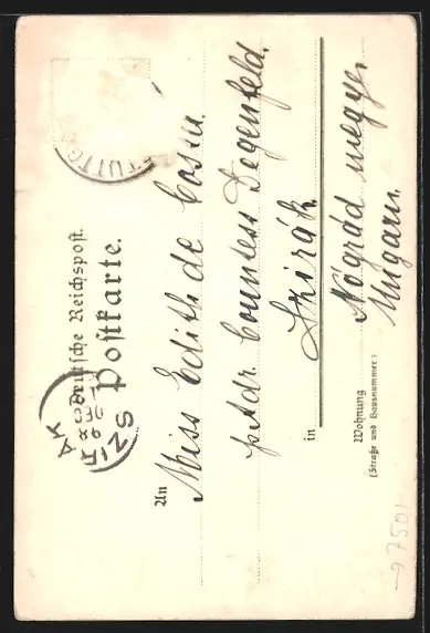 alte Ansichtskarte, gelaufen 1898, Briefmarke entfernt, rückseitig Oberflächenschaden, guter Zustand